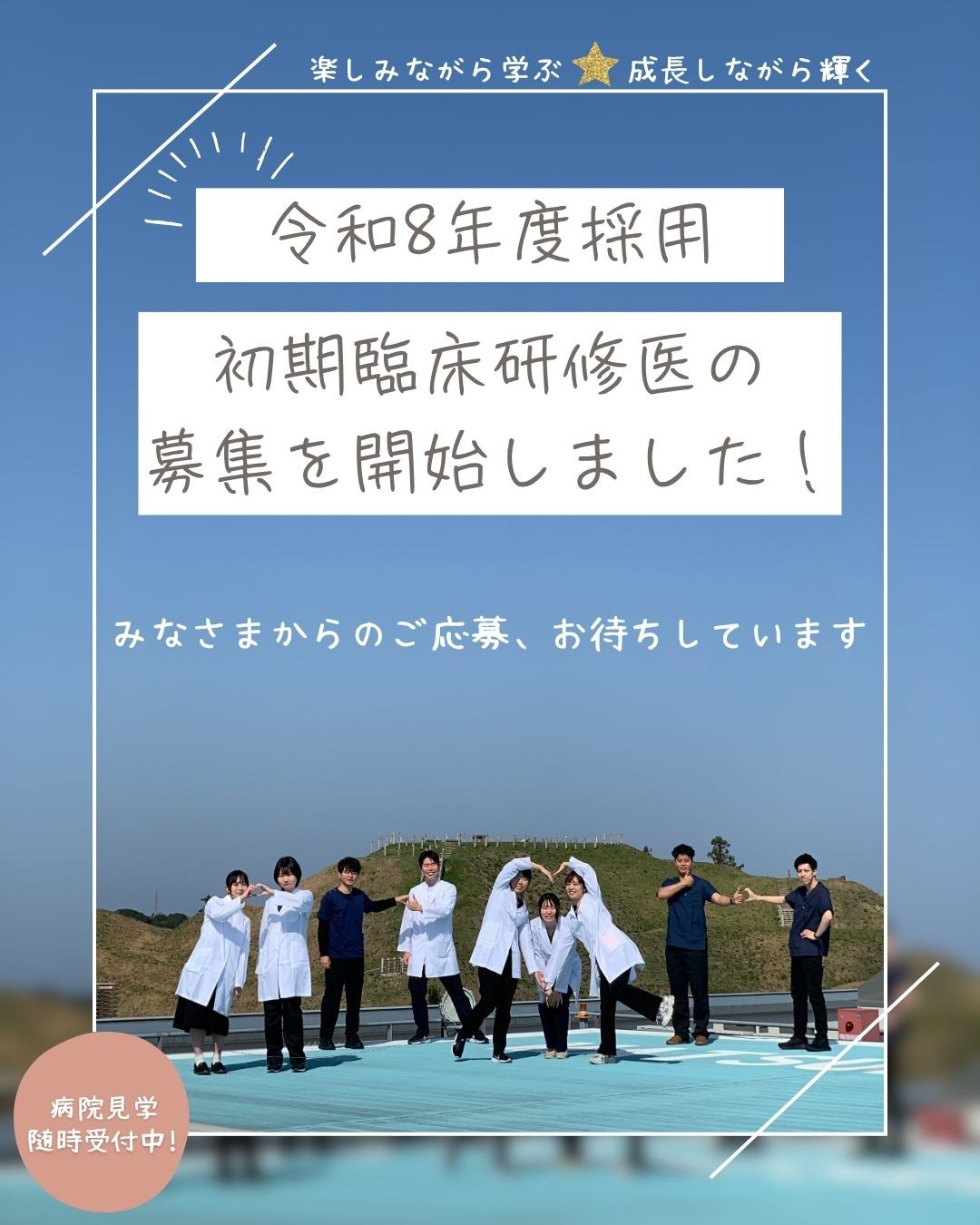 詳細は、初期臨床研修医募集サイトをご覧ください。病院見学も随時受付中です♡